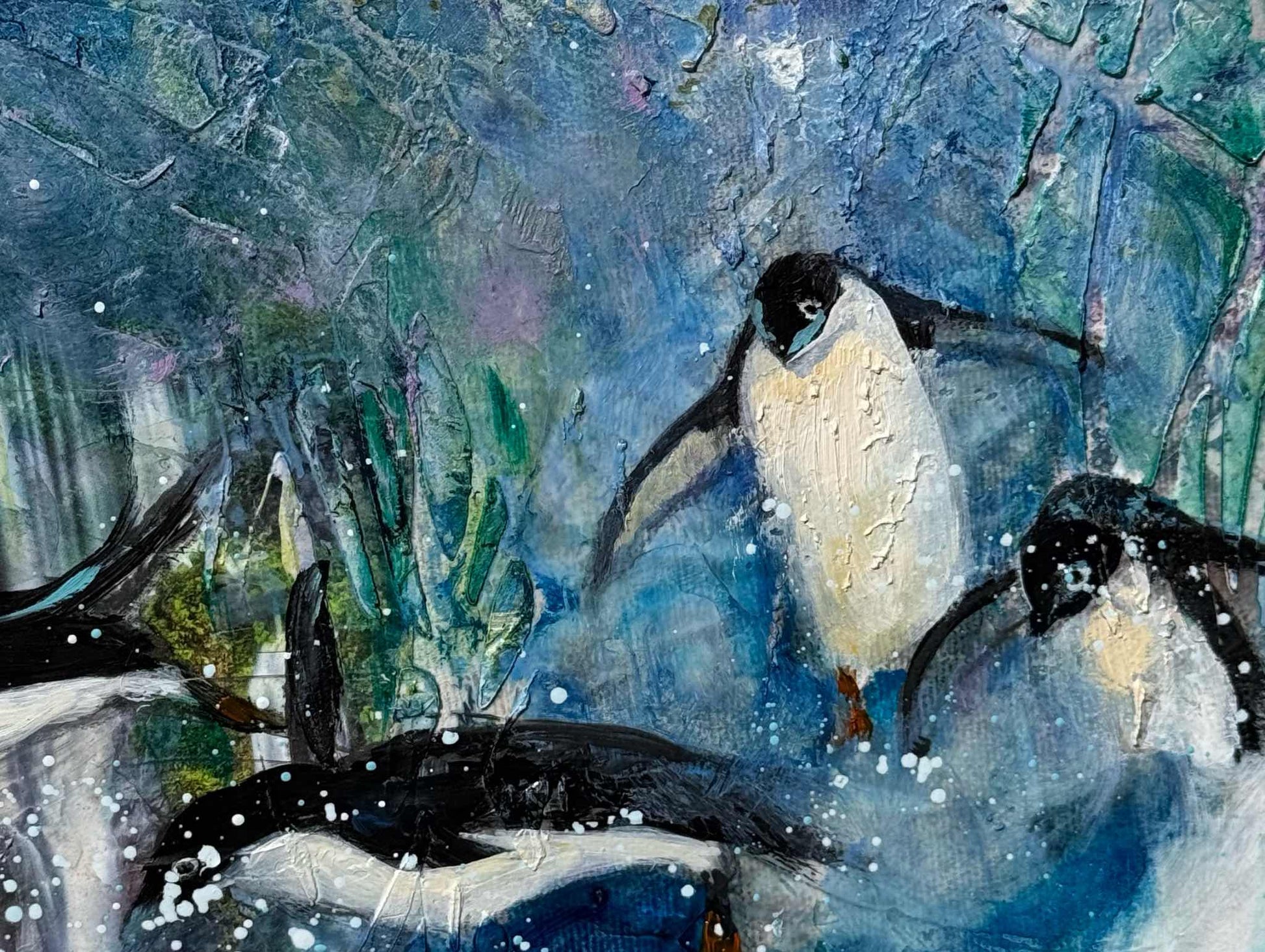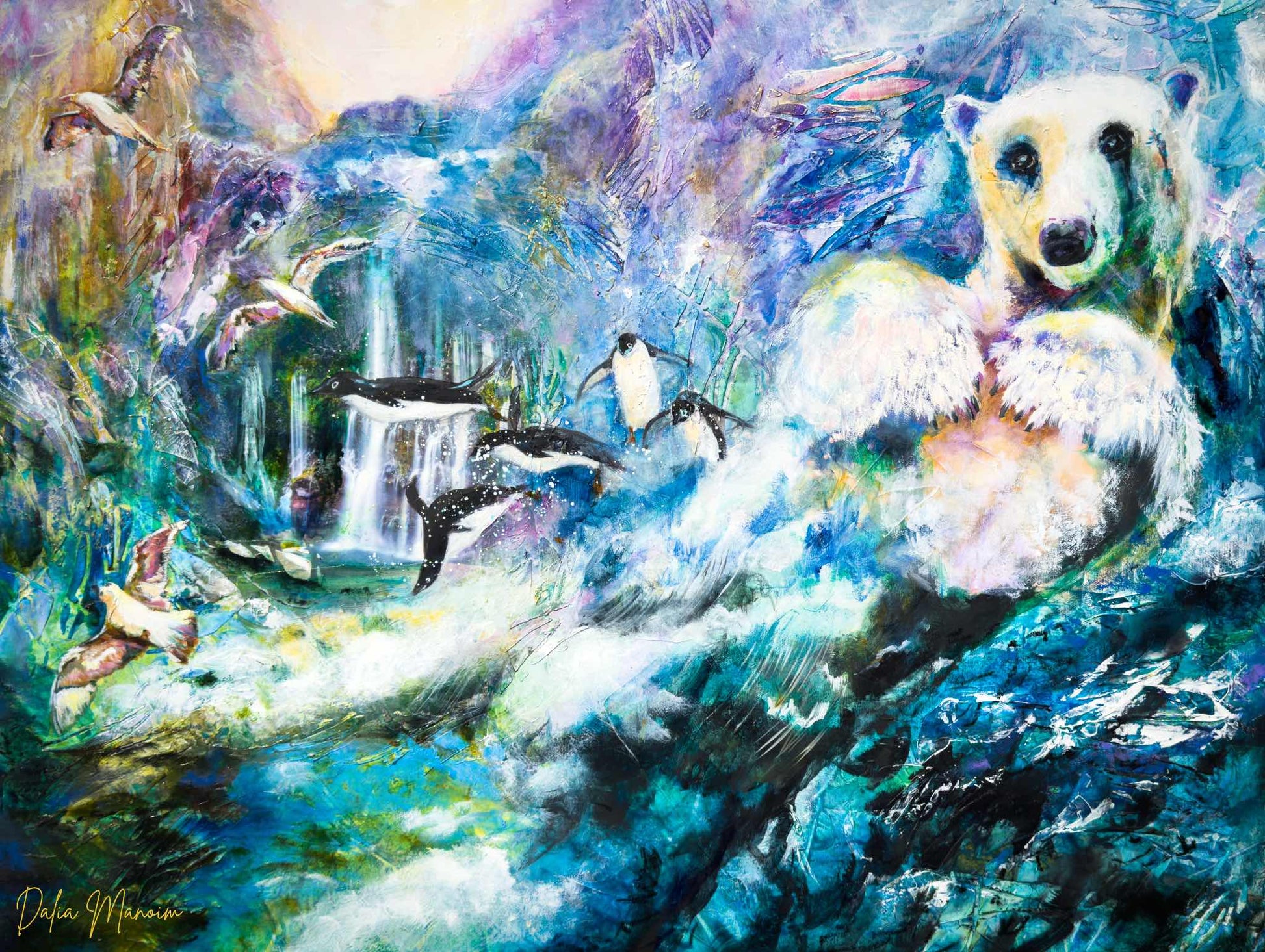 "Harmony in Motion" grew from the quiet conviction that progress rarely arrives all at once — it is composed of small, steady motions that gather into momentum. I think of days ending in a wash of color, when the light of a sunset clarifies what matters and reminds me that hope and gratitude are part of every forward step. This piece is an ode to that patient pursuit: the playful leaps, the steady swims, and the wings that carry us onward. It celebrates the friendships, risks, and inner calm that sustain us as we move toward our goals.