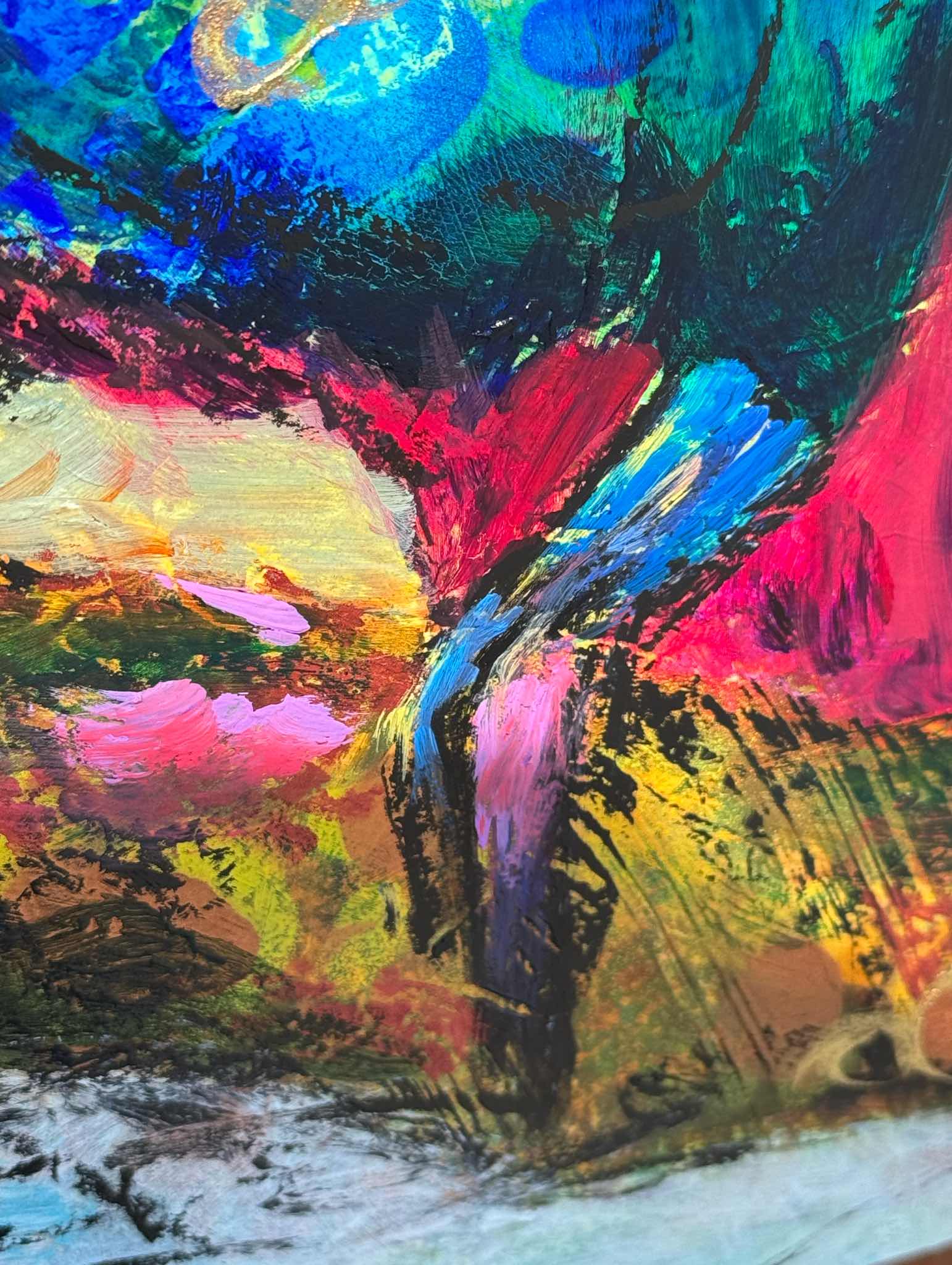 When the final highlights catch, I step back and remember why it began: not to be perfect, but to be seen. In that moment it becomes clear to me that the painting is an instruction to me and you: choose color over concealment, accept the stains along the way, and hold your place on the branch with the quiet courage of one who keeps coming back.