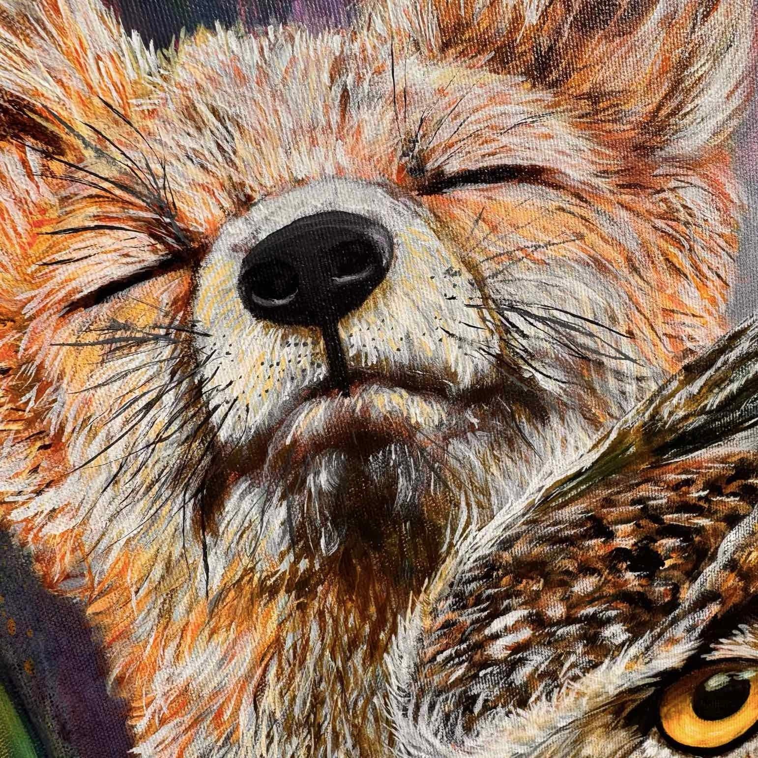 A fox in pure serenity, eyes gently closed,